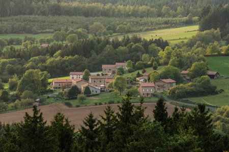 Landscape view of a small village in the middle of the forest
