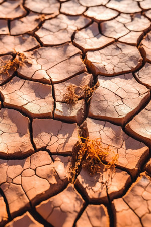 A barren landscape with cracked ground, the deep fissures in the soil highlighting the devastating impact of drought on the environment.