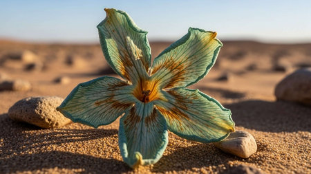 AI Generated. Solitary Flower on Cracked Earth in Warm Light