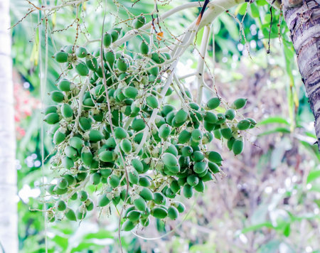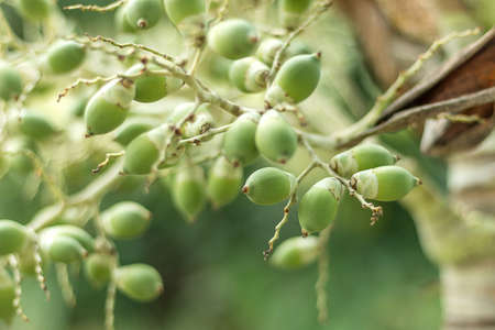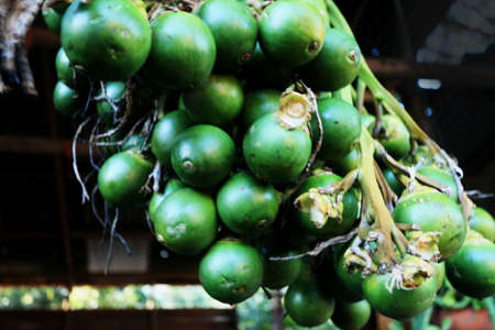 Green Areca Nut or Betel Nuts from Areca palm, Medium Shot in the Garden