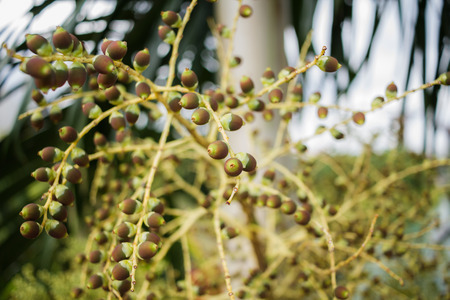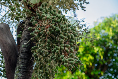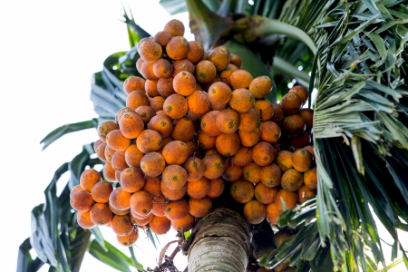 Betel palm or betel nut. fruit on the tree. Narcotic nut.
