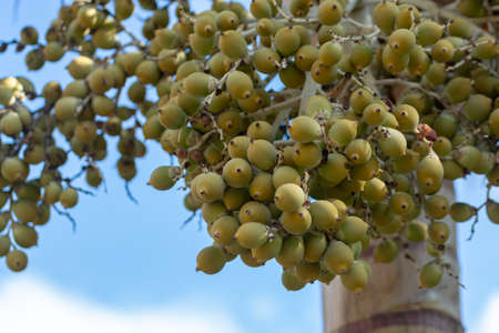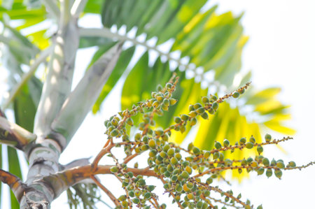 Areca palm or seed of Areca catechu L or ARECACEAE or seed of Areca palm and sky background