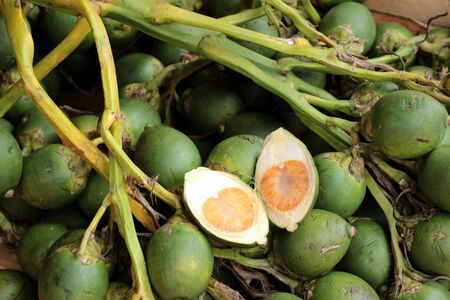 Closeup of Green Ripe Betel nut fresh betel palm