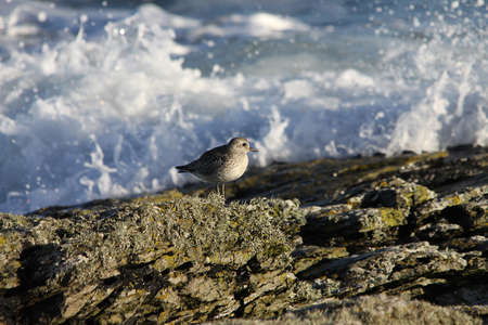 Purple sandpiper in its natural habitat by the sea