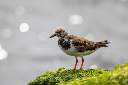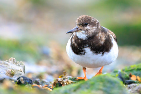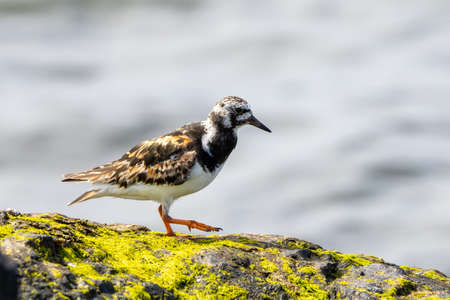 A beautiful Ruddy Turnstone standing on a mossy stone