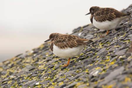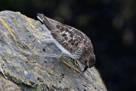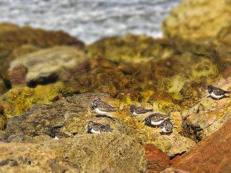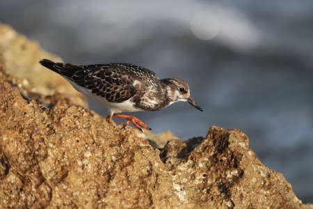 Ruddy Turnstone looking for food on the Japanese rocky shore on the way