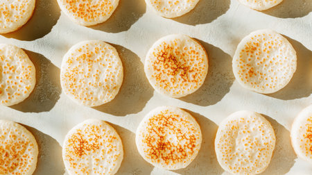 Close-up of rice cakes with crispy texture, placed off-center on light surface