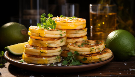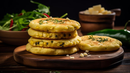 Group of vegan Arepas, ideal for a balanced diet. Latin american food