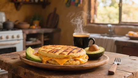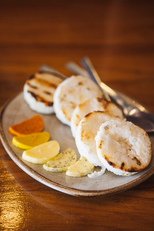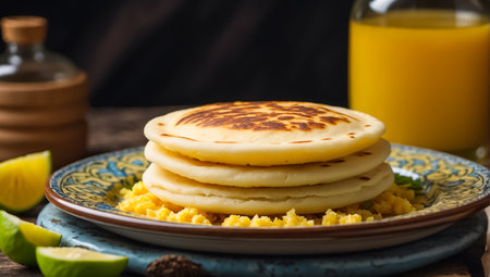 Colombian arepa - Traditional Colombian food. Delicious breakfast