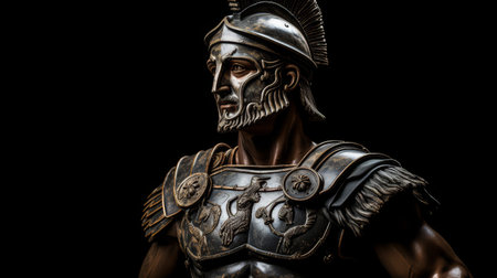 Portrait of roman soldier. Ancient warrior in battle. Generative AI