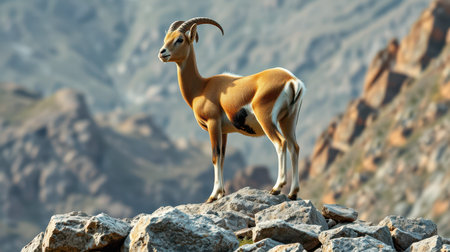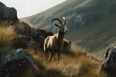 Mountain goat stands proudly on rocky terrain in the wilderness, showcasing natures beauty and strength in the wild landscape