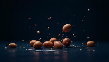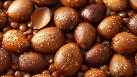 A close-up, highly detailed shot of argan nuts. Concept: natural products, organic ingredients, skincare, and health benefits of argan oil.