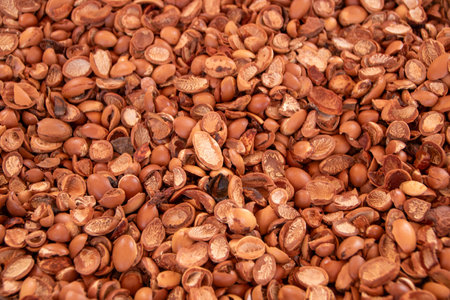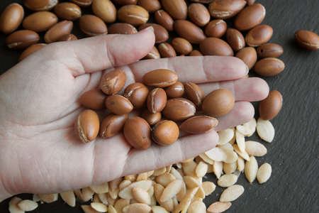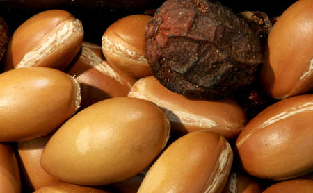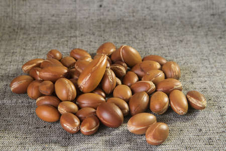 Traditional Moroccan argan nuts. Argan seeds (Argania spinosa). Close up