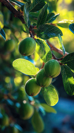Fresh argan fruits on a branch