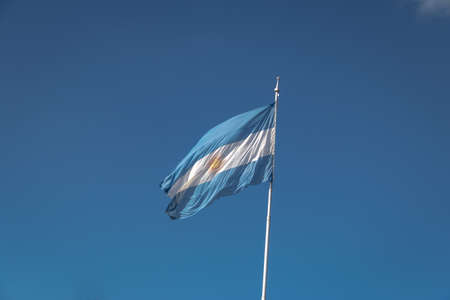 Argentina flag waving in the wind on sunny day. High-quality photo