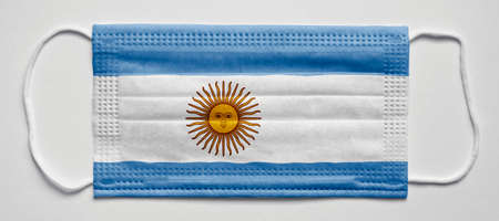 Argentina flag. PANDEMIA. Medical mask, Medical protective mask on a white background.Healthcare and medical concept.