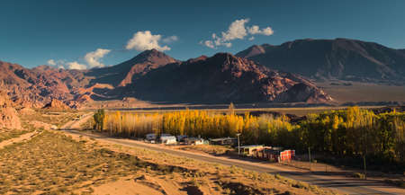Sunny autumn afternoon by the Andes mountains in the valley of Uspallata, province of Mendoza, Argentina.