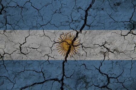 Argentina flag on the background texture of cracked earth. The concept of design solutions.