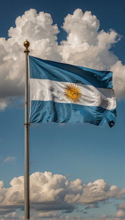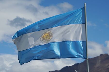 The flag of Argentina waving on the wind and some clouds in the sky on background