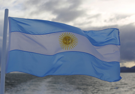 Argentina flag on texture background. Background for greeting cards for Argentina public holidays. Columbus Day, Flag Day, Gay Parade, Veterans Day, Independence Day, Oktoberfest, San Martin Day.