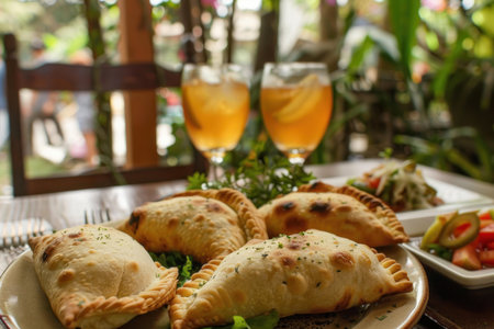 Freshly baked empanadas with iced tea, perfect for a patio brunch setup