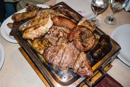 Typical roast beef and sausages in Argentina