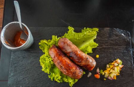 Traditional Argentinian chorizo sausages served