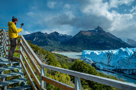 Hiker in Los Glaciares National Park ,Glacier Perrito Moreno in Patagonia, Argentina