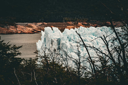 Massive glacier Perito Moreno in Patagonia, Argentina through the branches
