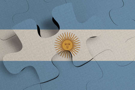 Composition of the concept of crisis and integration of a country Argentina FLAG PAINTED ON PUZZLE 3D RENDER