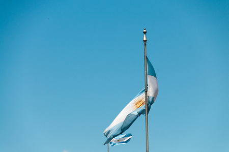 Close-up of the argentinian flag waving in the wind in Buenos Aires