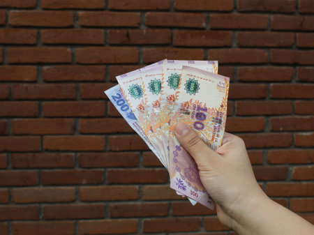 Argentine banknotes of 100 pesos, taruca, of correlative numbering. With a wooden background.