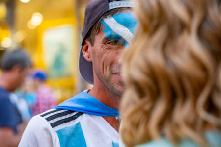 Nizhny Novgorod, Russia - June, 2018 - Argentine fans at the World Cup 2018.
