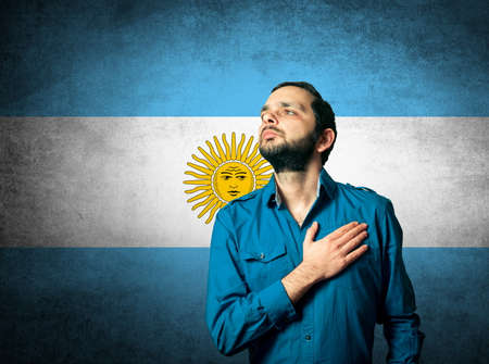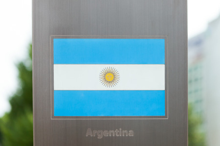 Argentina flag on texture background. Background for greeting cards for Argentina public holidays. Columbus Day, Flag Day, Gay Parade, Veterans Day, Independence Day, Oktoberfest, San Martin Day.