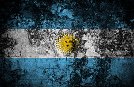 National flag of Argentina on old peeling wall background.The concept of national pride and symbol of the country.