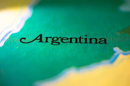 colorful view of argentina magnified with a magnifying glass, blurred background