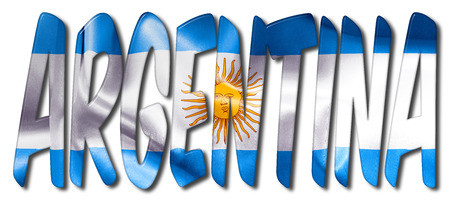Argentina word with a flag texture on an isolated white background with a clipping path