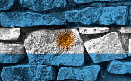 National flag of Argentina on stone wall background. Flag banner on stone texture background.
