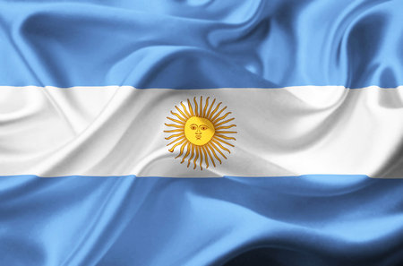 Argentina flag with fabric texture background. National flag of Argentina with cloth texture