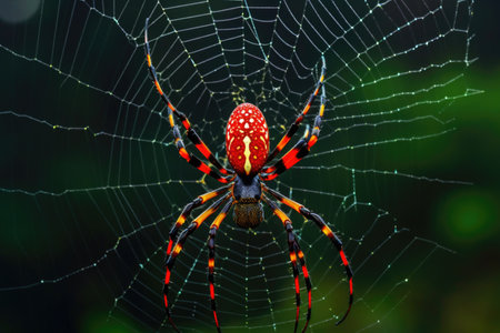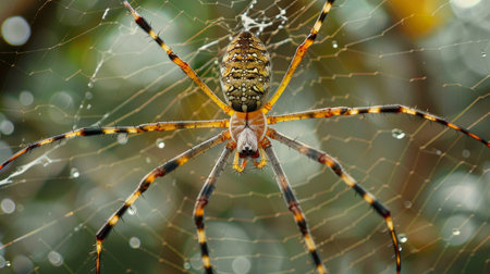 Golden orb weaver spider on dew covered web with sparkling strands