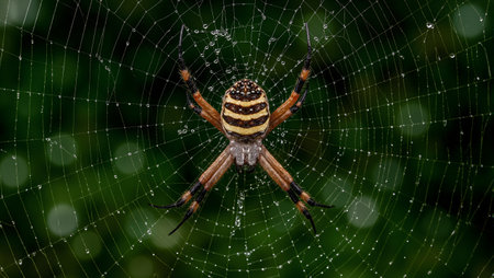 Intricate spider web with a vibrant spider in the center