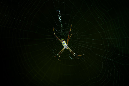 Orb Weaver Spider Spinning Massive Web, High-Detail Macro Stock Photo