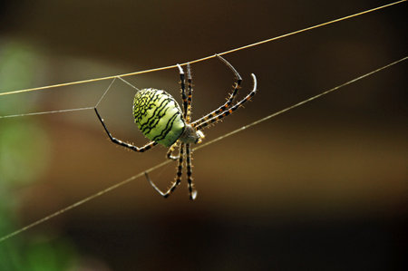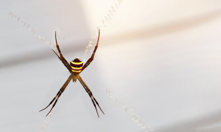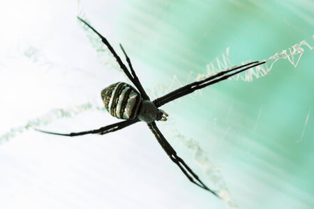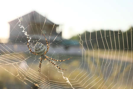 Spider bites on the fiber in peace waiting for victims unlucky in outdoor in summer.