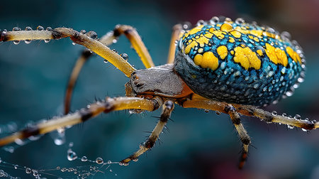 Macro shot of a spider with water droplets on its body