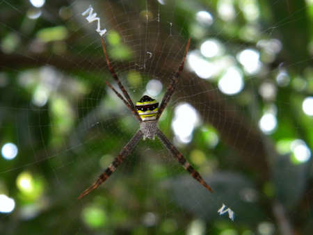 St. Andrew's Cross , Argiope spider rests on its web, Ko Tao, Thailand