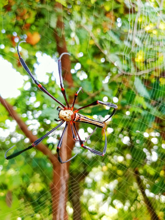 Golden orb-weaver spider in its web in the jungle