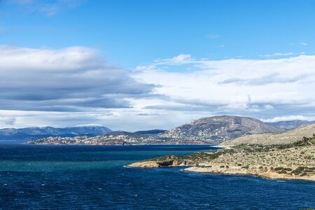 Overview of the coast of East Attica from the Cape Sounion in Greece