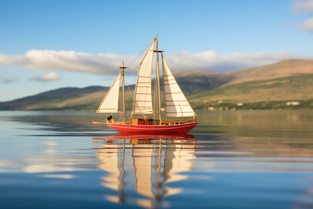 fully assembled homemade sailboat on peaceful sea, created with generative ai