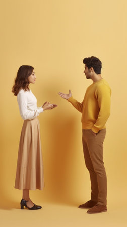 Engaged in Conversation Two Men Gesture and Express, Studio Lighting, Natural Tones.