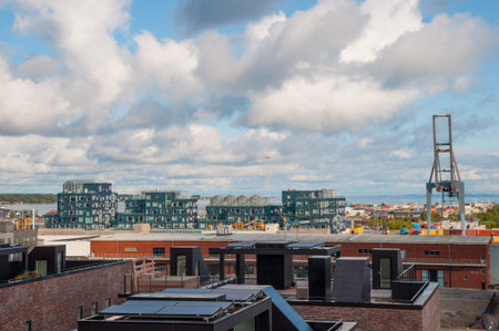 HELSINGBORG, SWEDEN - OCTOBER 06, 2020: An elevated view of the city of showing some of the different architectural details and styles.